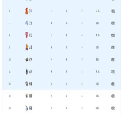 CBA积分榜最新排名出炉!广东险胜杀回第2:辽宁第8新疆第14