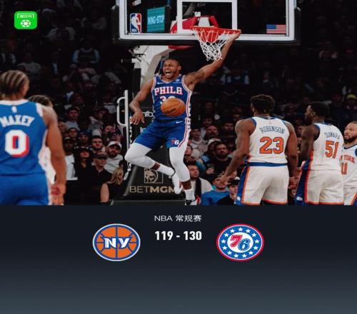 第四节尼克斯唐斯拿下12分,76人马克西拿下9分,最终尼克斯119-130不敌76人