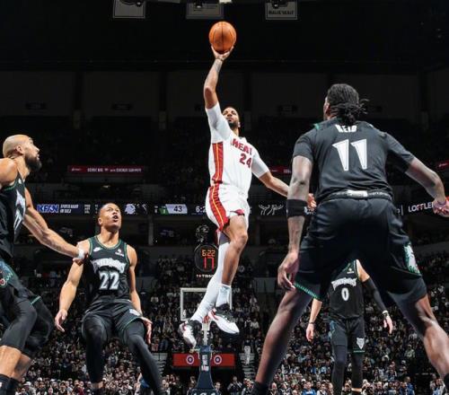 易边再战,森林狼上来延续势头,爱德华兹和迪温琴佐相继命中三分,分差拉开到两位数,热火进攻陷入低迷,阿德巴约三分止血,爱德华兹做出回应,约维奇也能命中,森林狼进攻势头依然出色,牢牢占据场上主动,兰德尔三分命中,迪温琴佐三分2连击,三节打完森林狼已经取得93-77领先。