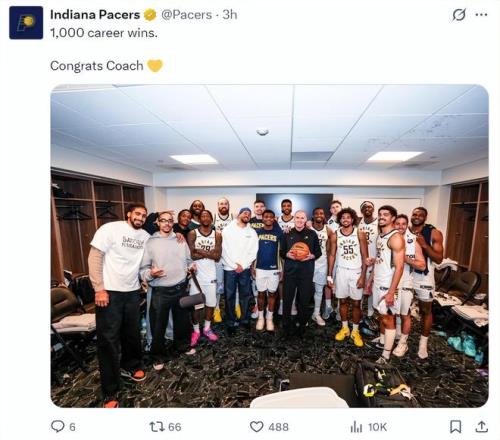 卡莱尔这千胜,独行侠就贡献了555胜,步行者345胜,活塞100胜,诺维斯基、东契奇等人都为卡帅发来了祝贺。