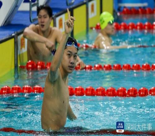 2025年11月13日,第十五届全运会游泳比赛男子200米蝶泳决赛,深圳本土选手陈俊儿在比赛中,最终,他以1分56秒83的成绩获得铜牌。