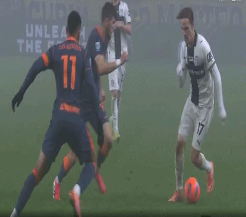 第90分钟,奇尔卡蒂撞倒图拉姆,裁判示意犯规