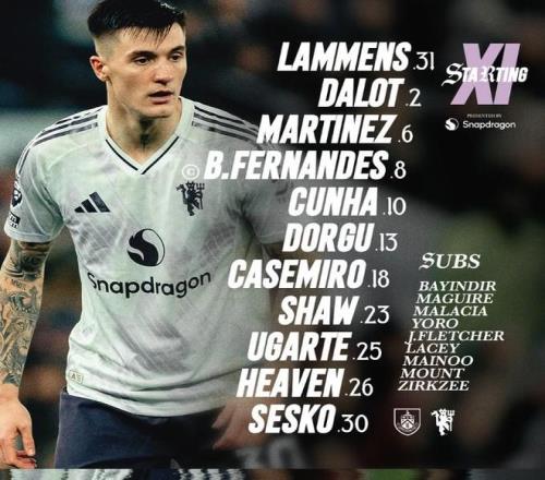 曼联客战伯恩利:谢什科、库尼亚首发,B费、卢克肖出战
