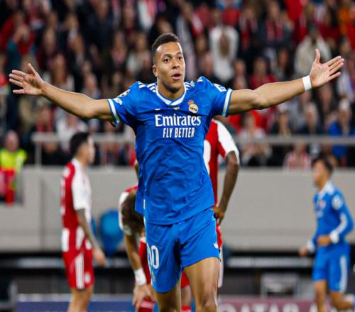 欧冠联赛阶段第5轮,皇家马德里客场对阵奥林匹亚科斯,姆巴佩上演大四喜,成为自吉鲁以来,首位在欧冠单场打入4球的...